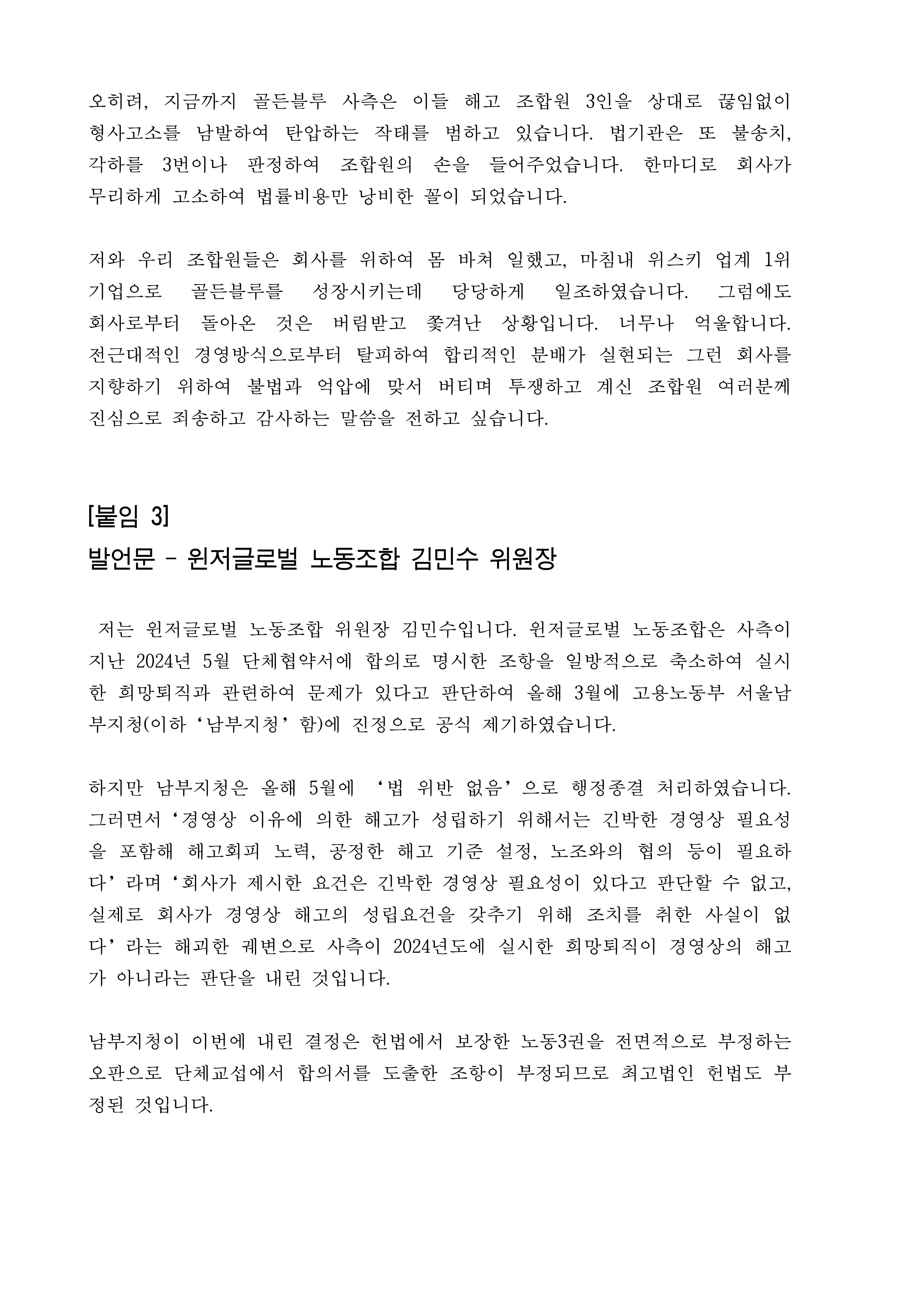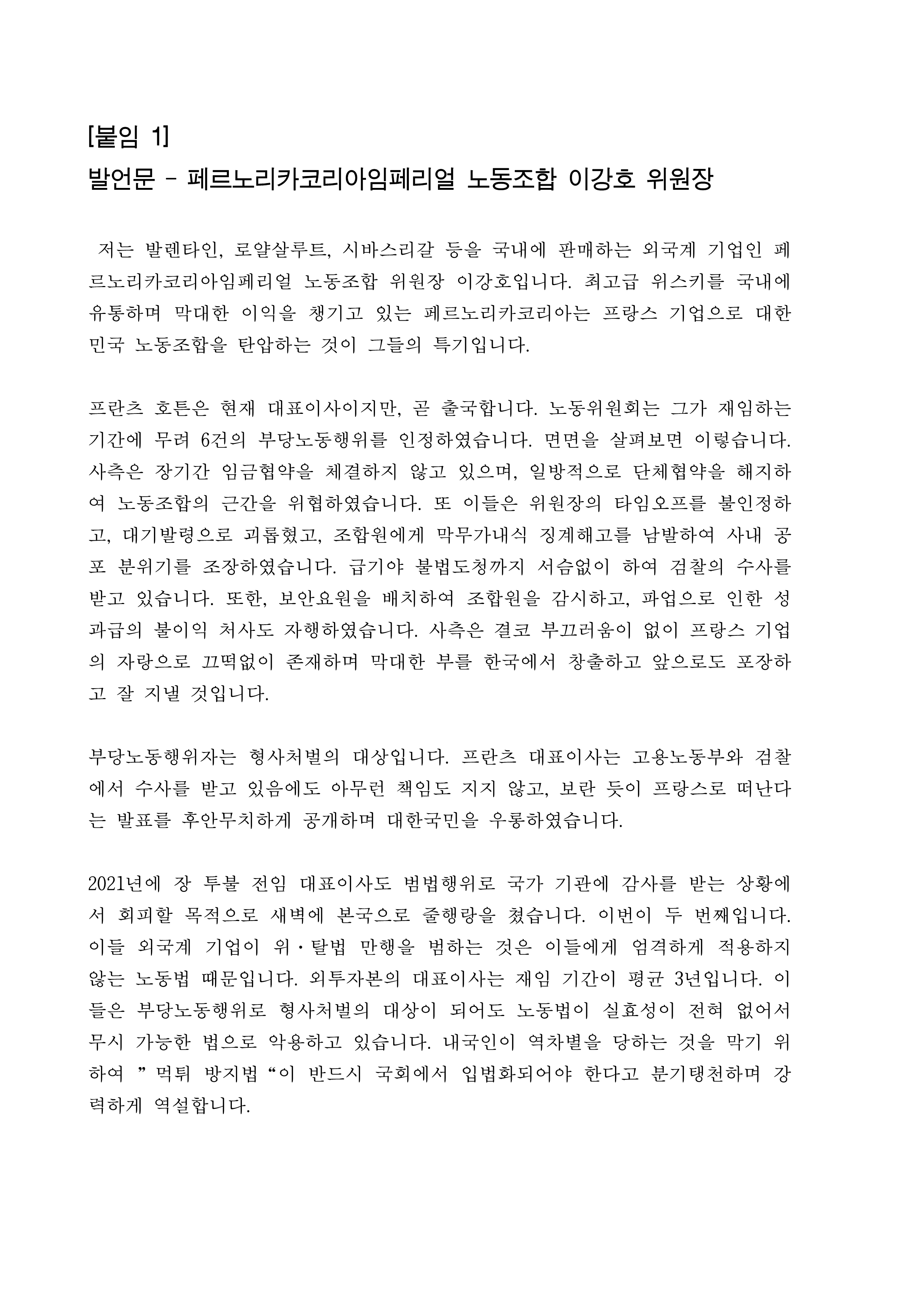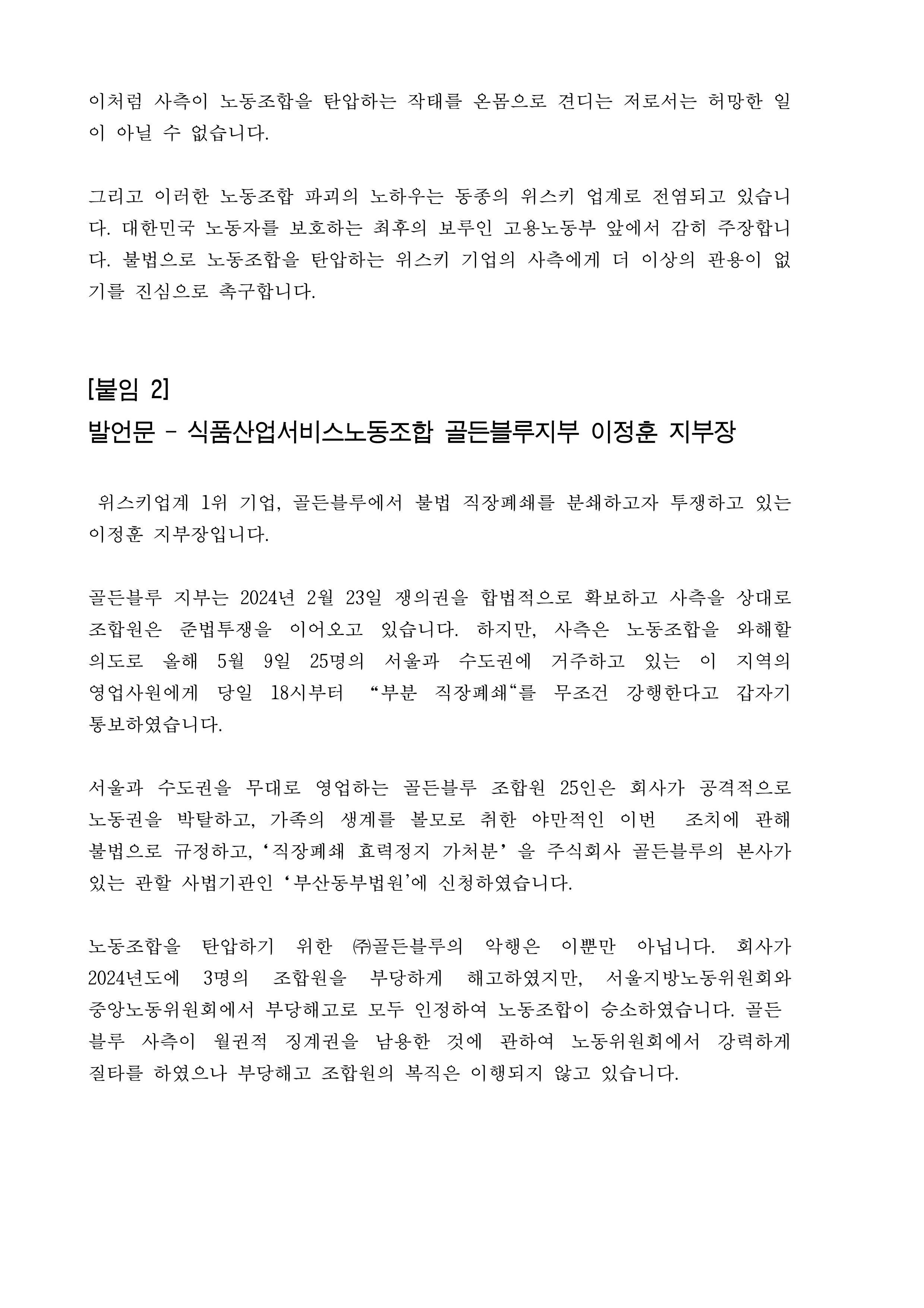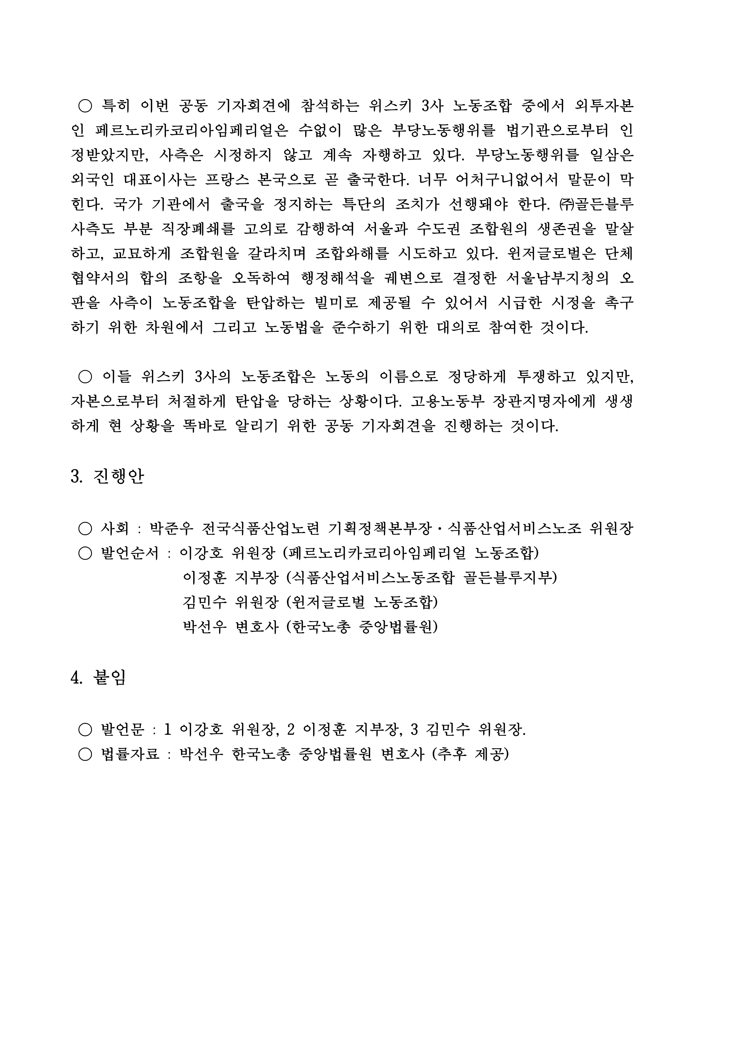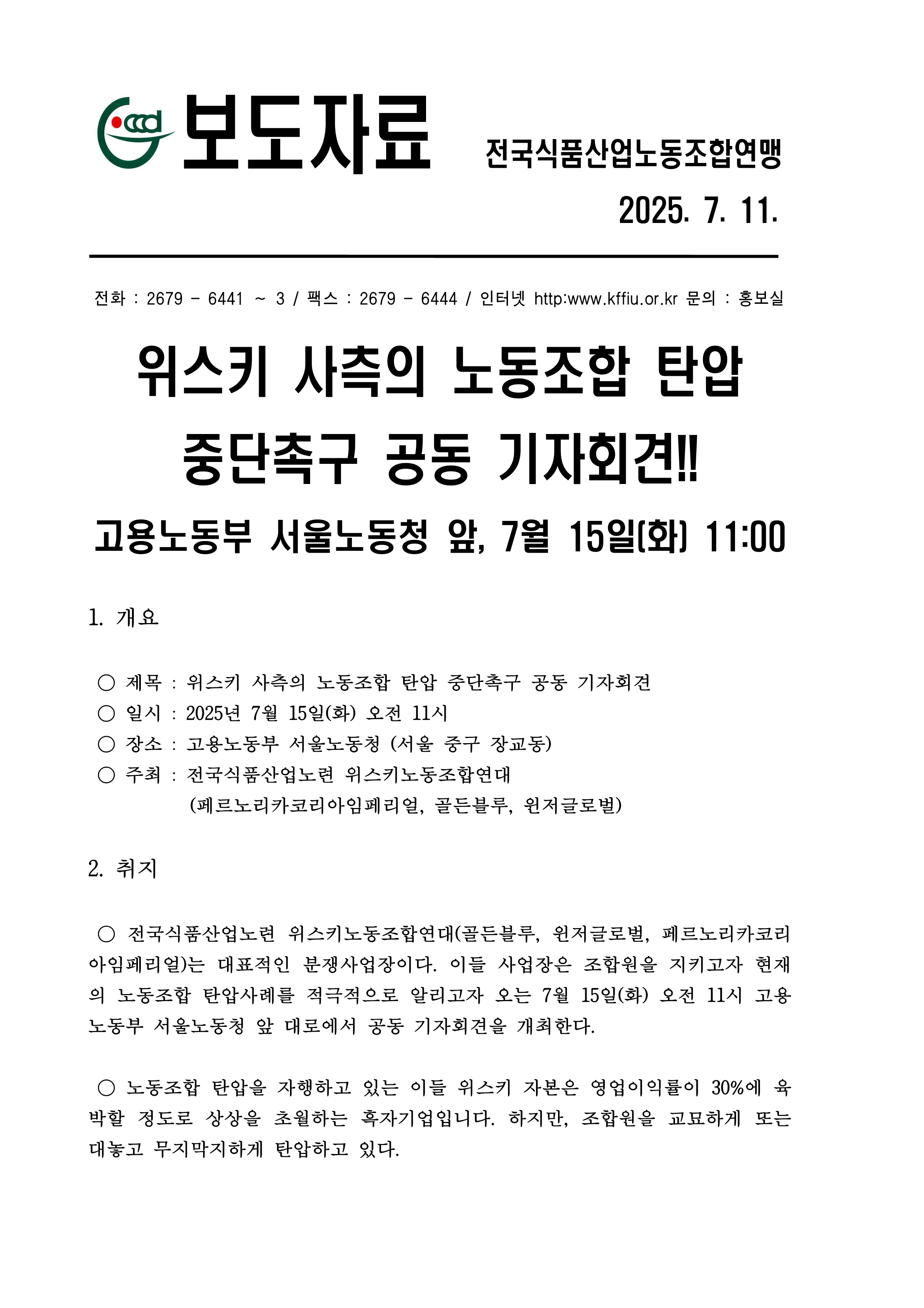[보도자료] 위스키노동조합연대 기자회견