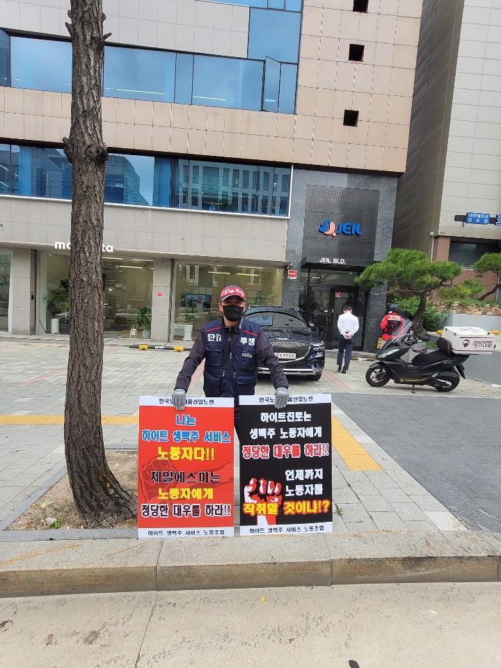 하이트생맥주서비스 노동조합 1인 시위 현장