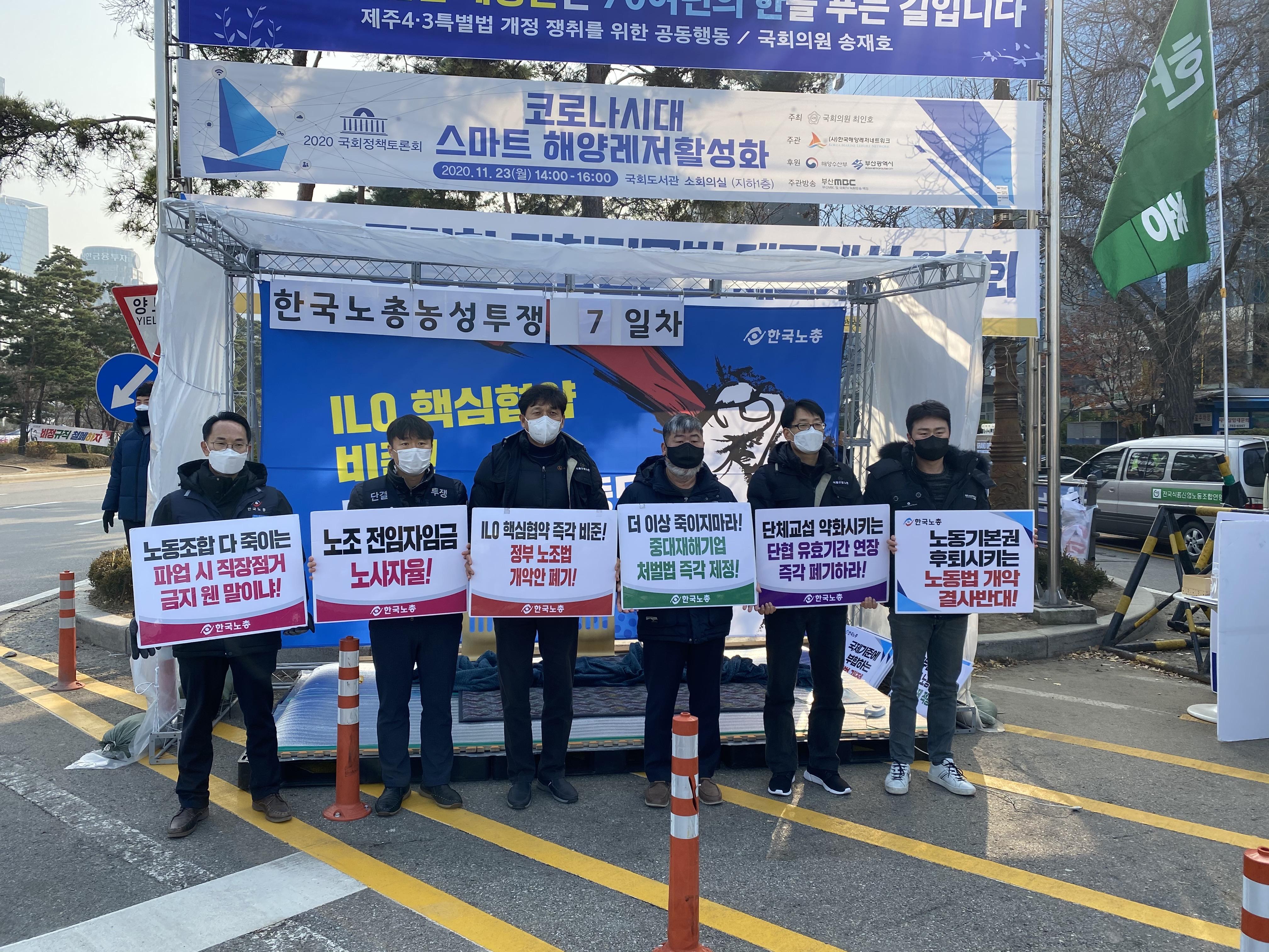 ILO 핵심협약 비준, 노조법 개악 저지 천막농성 결합