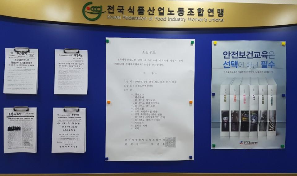 전국식품산업노련 2018년도 정기대의원대회 소집공고