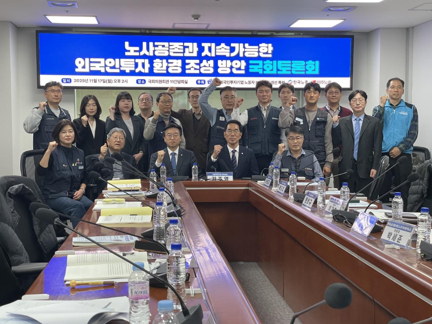 한국노총, 민주노총, 더불어민주당이 지난 11월 17일(월) 오후 2시부터 국회의원회관 11간담회장에서“노사공존과 지속 가능한 외국인투자 환경 조성 방안 국회토론회”를 공...